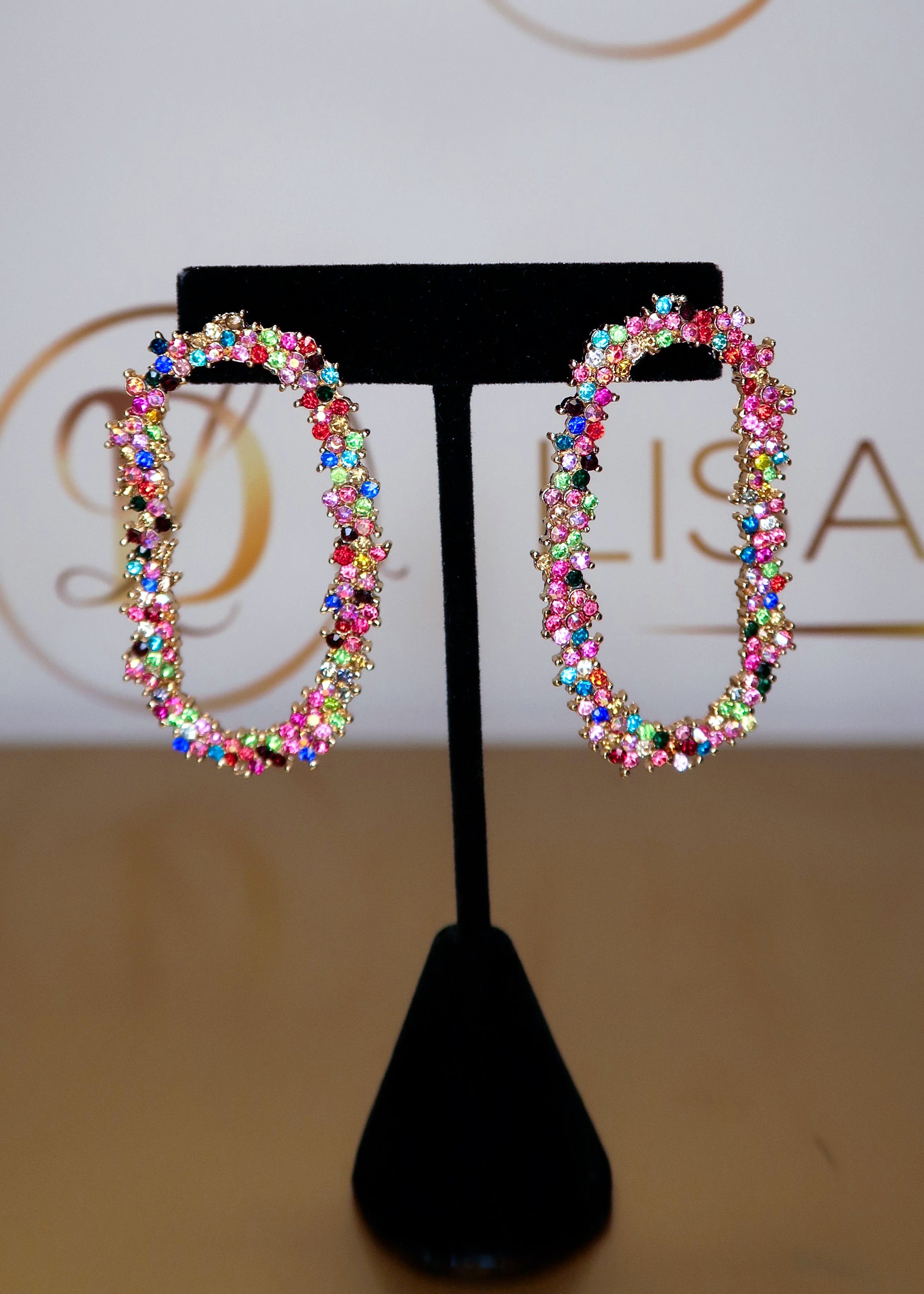 18K Gold Plated Oblong Multicolor Earrings
