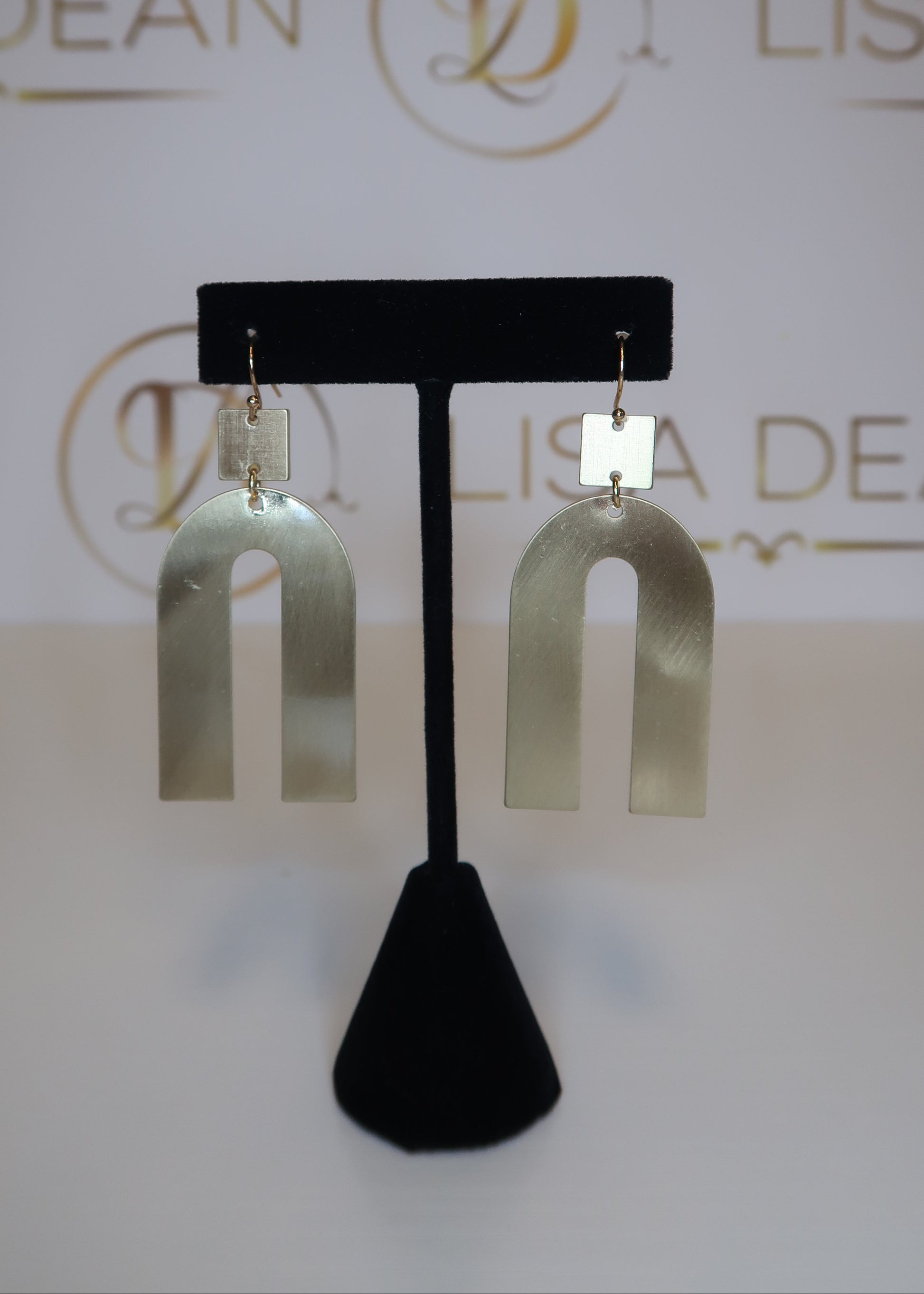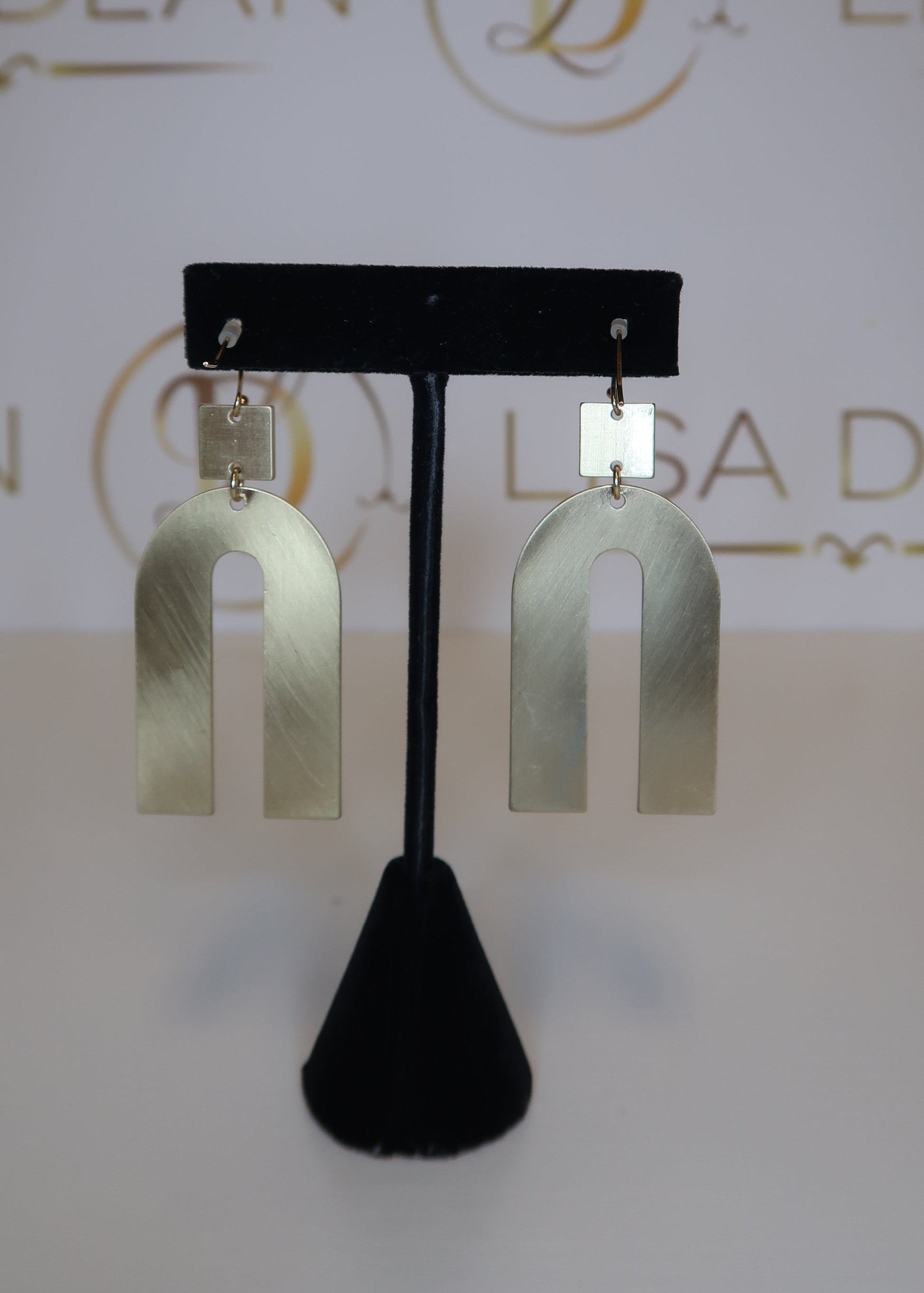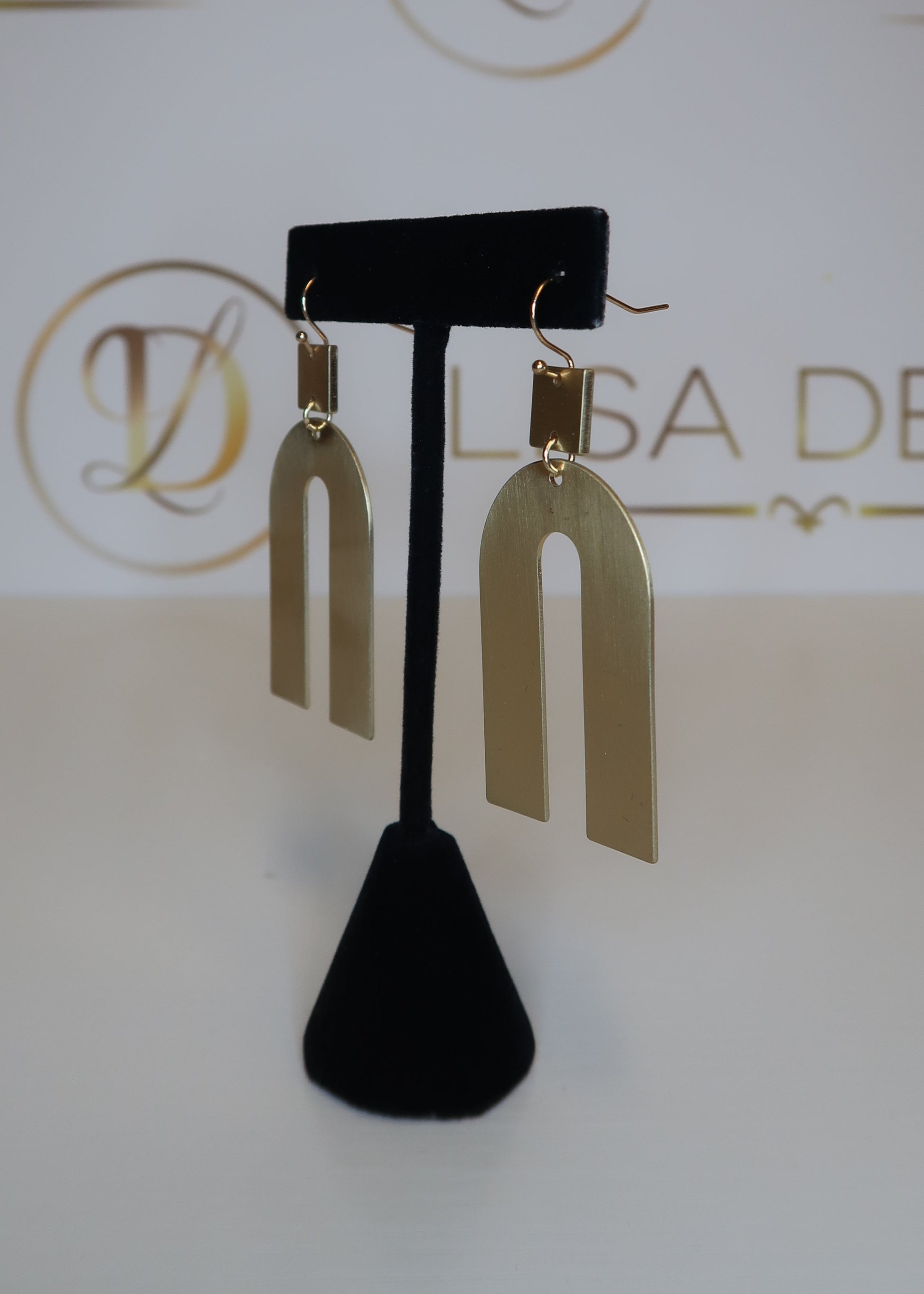 Add a little edge with these matte brushed gold arch earrings on a fish hook back! Approx. 2 1/2" in length.