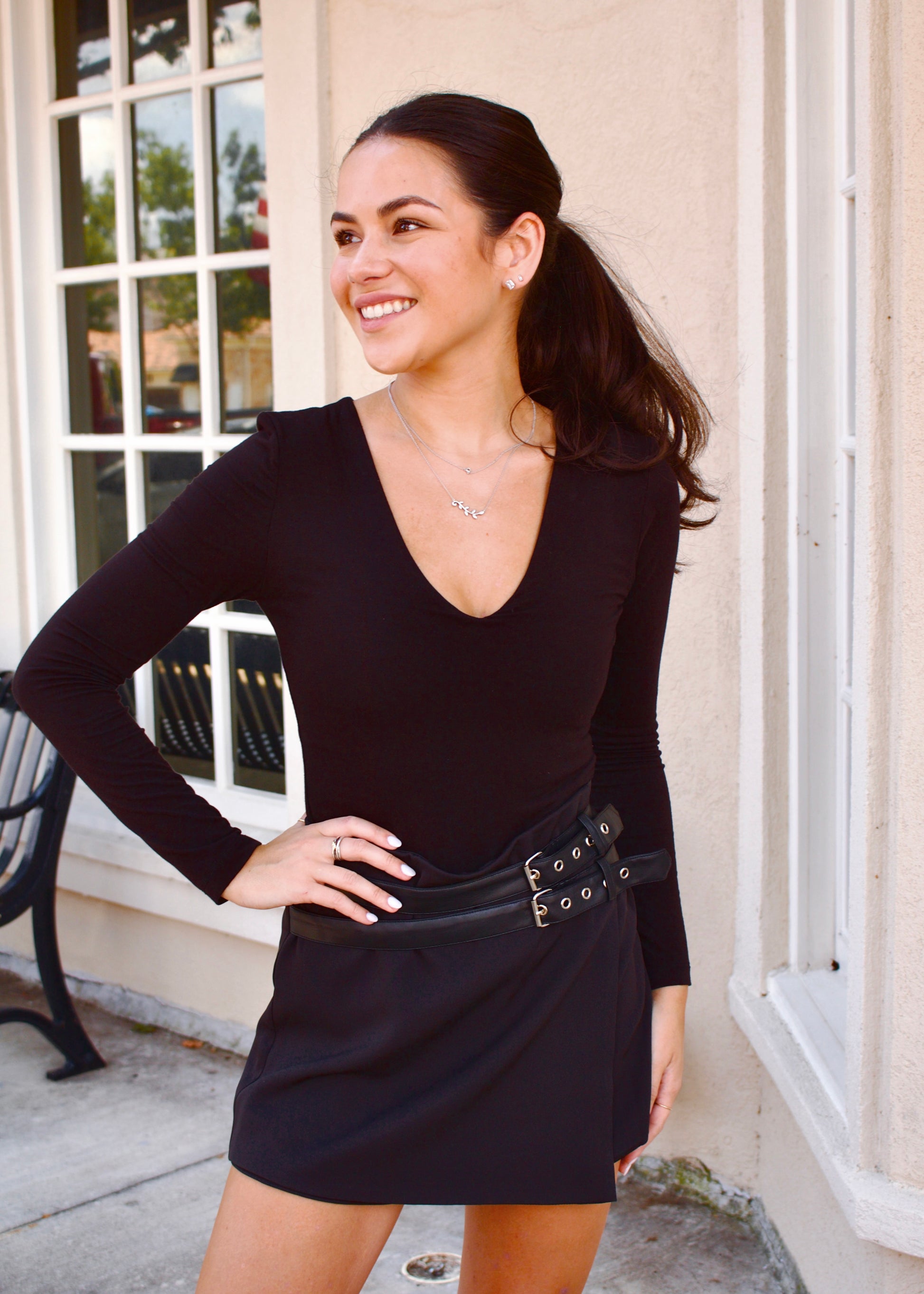 Get ready to buckle up and stand out with our Buckle Asymmetric Skort in classic black. This skort features a unique buckle detail for an edgy touch, making it perfect for any fashion-forward individual. With its asymmetric design, you'll be sure to turn heads and make a stylish statement wherever you go.
