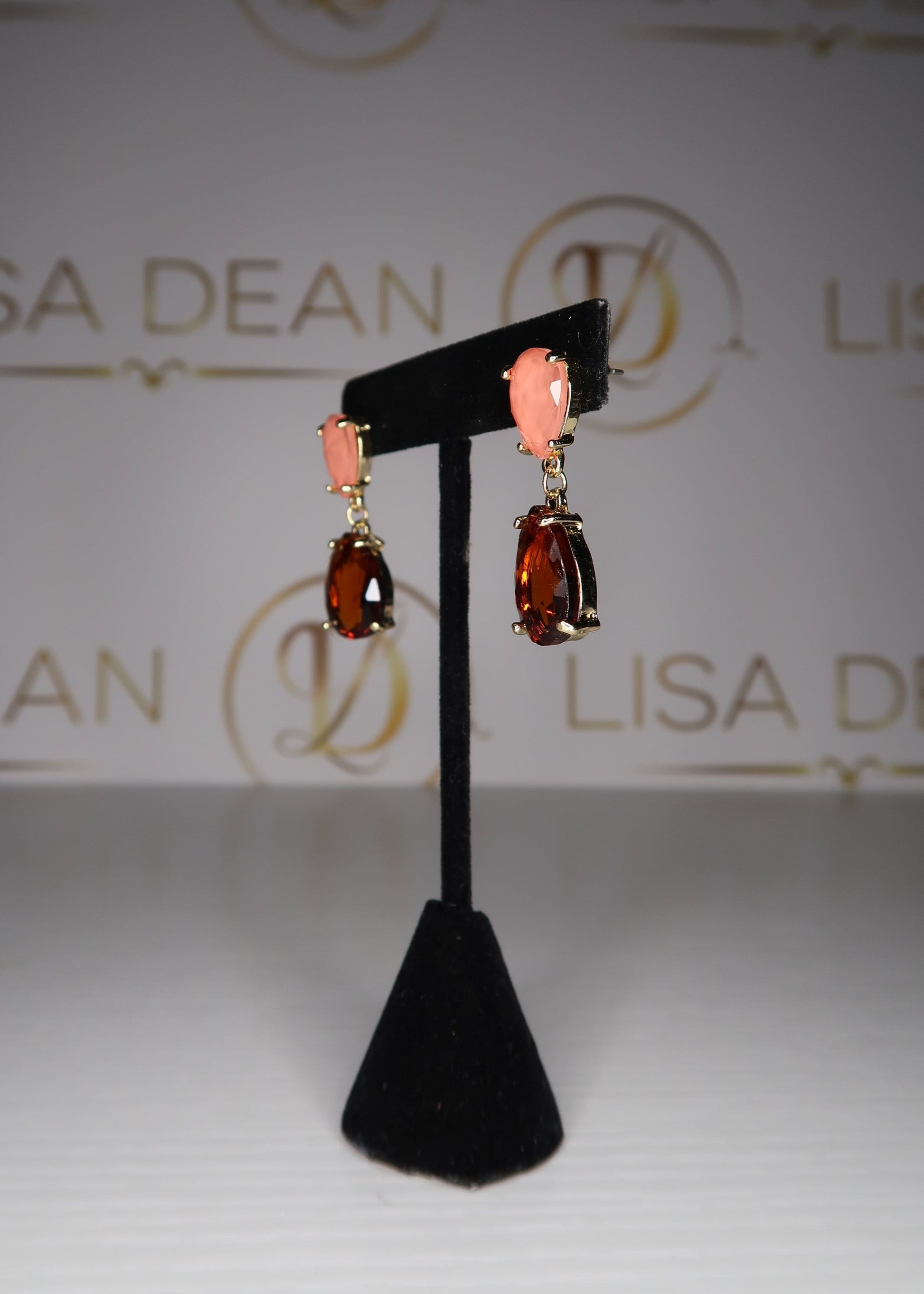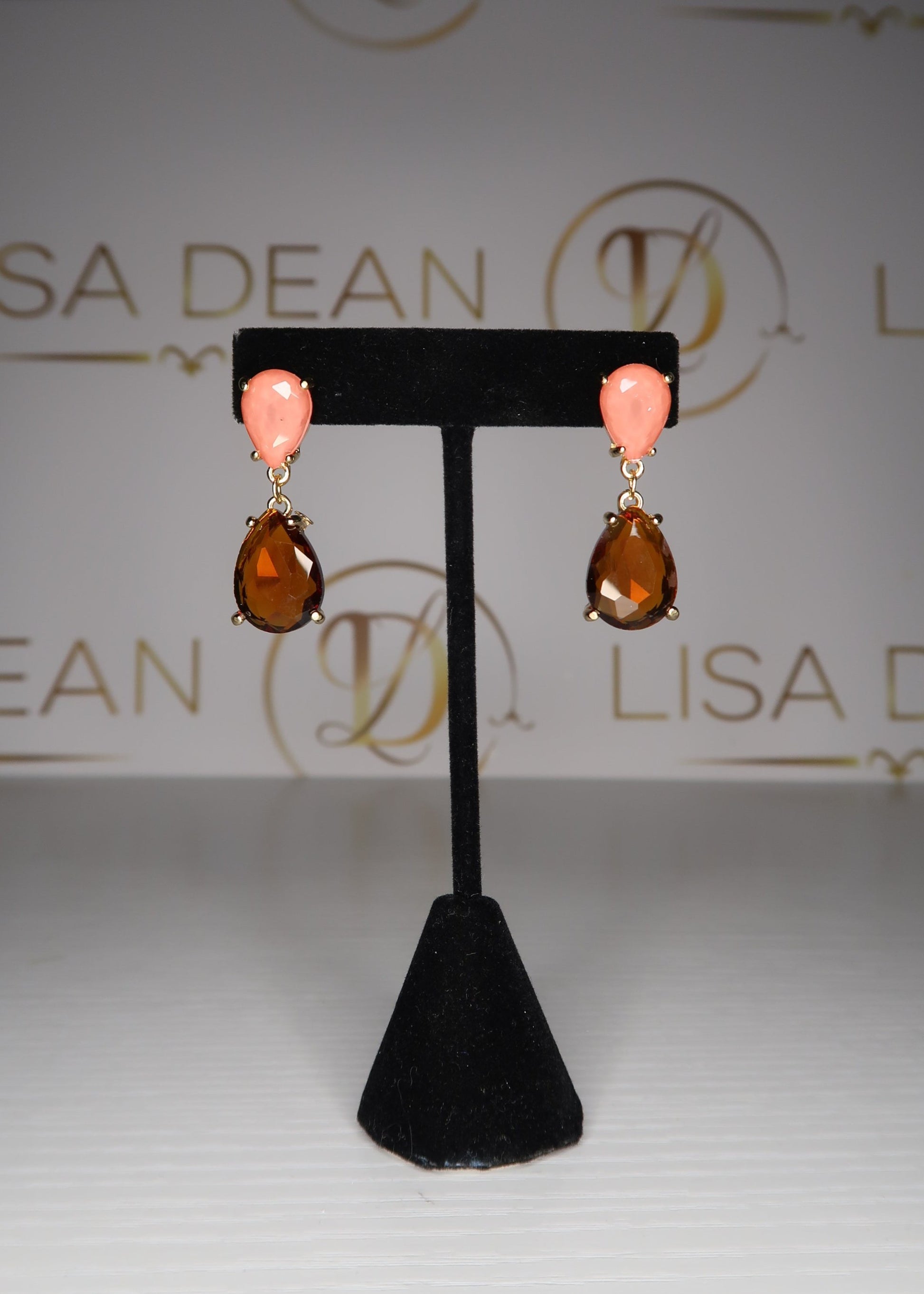 These pear shaped crystal drop earrings are ready for Fall! Featuring pink and amber tone crystals measuring approx. 1 1/2" in length on a post style back.
