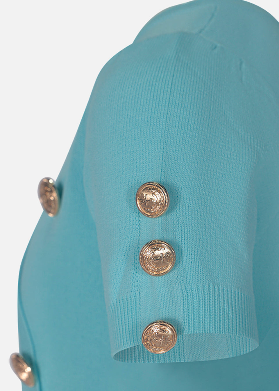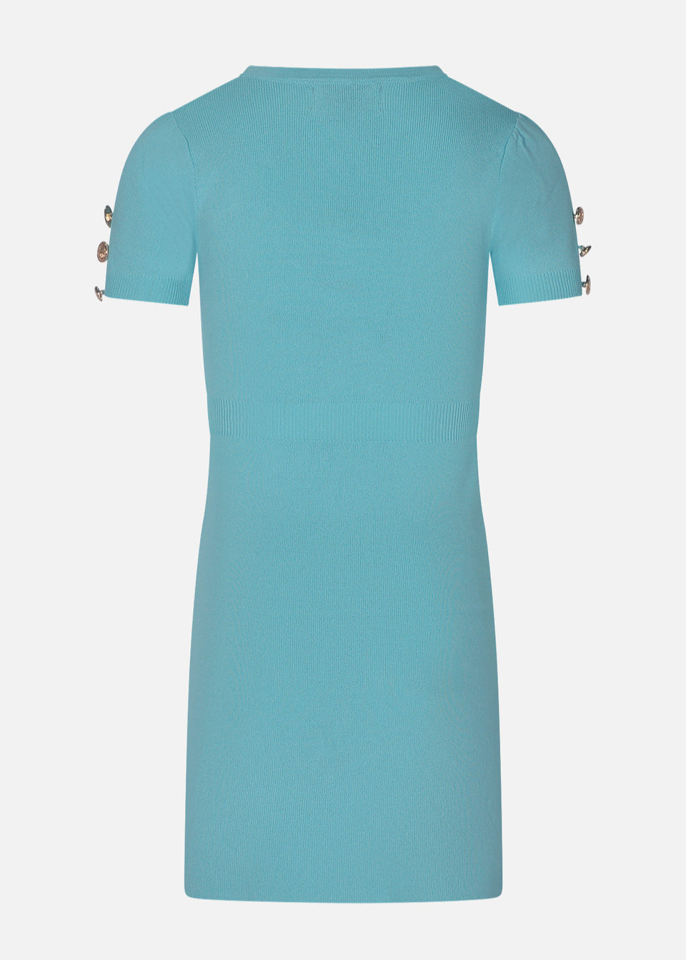 Straight from Italy, this girls' luxury knit dress features decorative gold buttons and cap sleeves to make this a must have! Fabric is lightweight and smooth--a great wardrobe edition for those with sensitive skin!