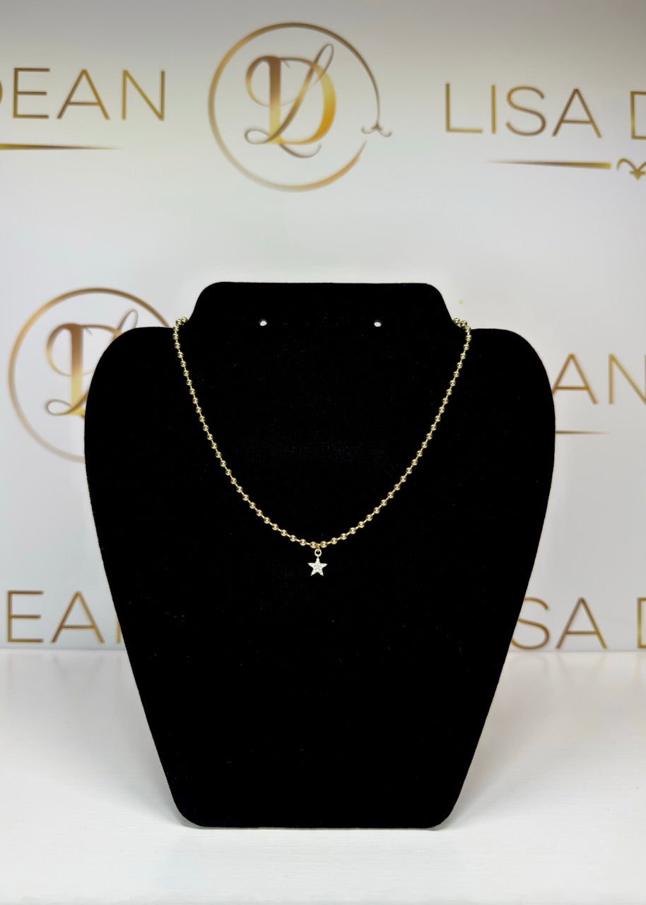 Gold tone pave rhinestone star pendant on a 14" bead choker chain with 3" extender