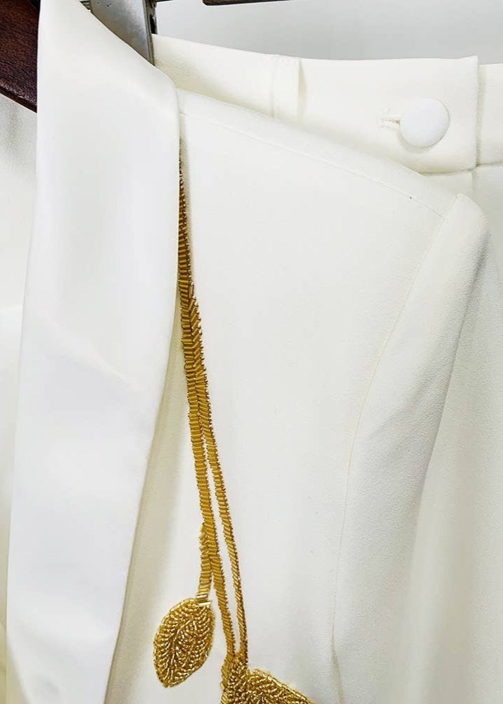 A Lisa Dean Exclusive || Discover elegance with our beaded suit set, perfect for the fashion-forward. The slim-fit blazer, adorned with intricate beadwork, pairs beautifully with flared trousers, offering a sleek silhouette. Crafted from high-quality fabric, this ensemble ensures comfort and style.it’s designed to make a statement. Elevate your offerings with this exquisite two-piece set, a blend of sophistication and modern flair.
