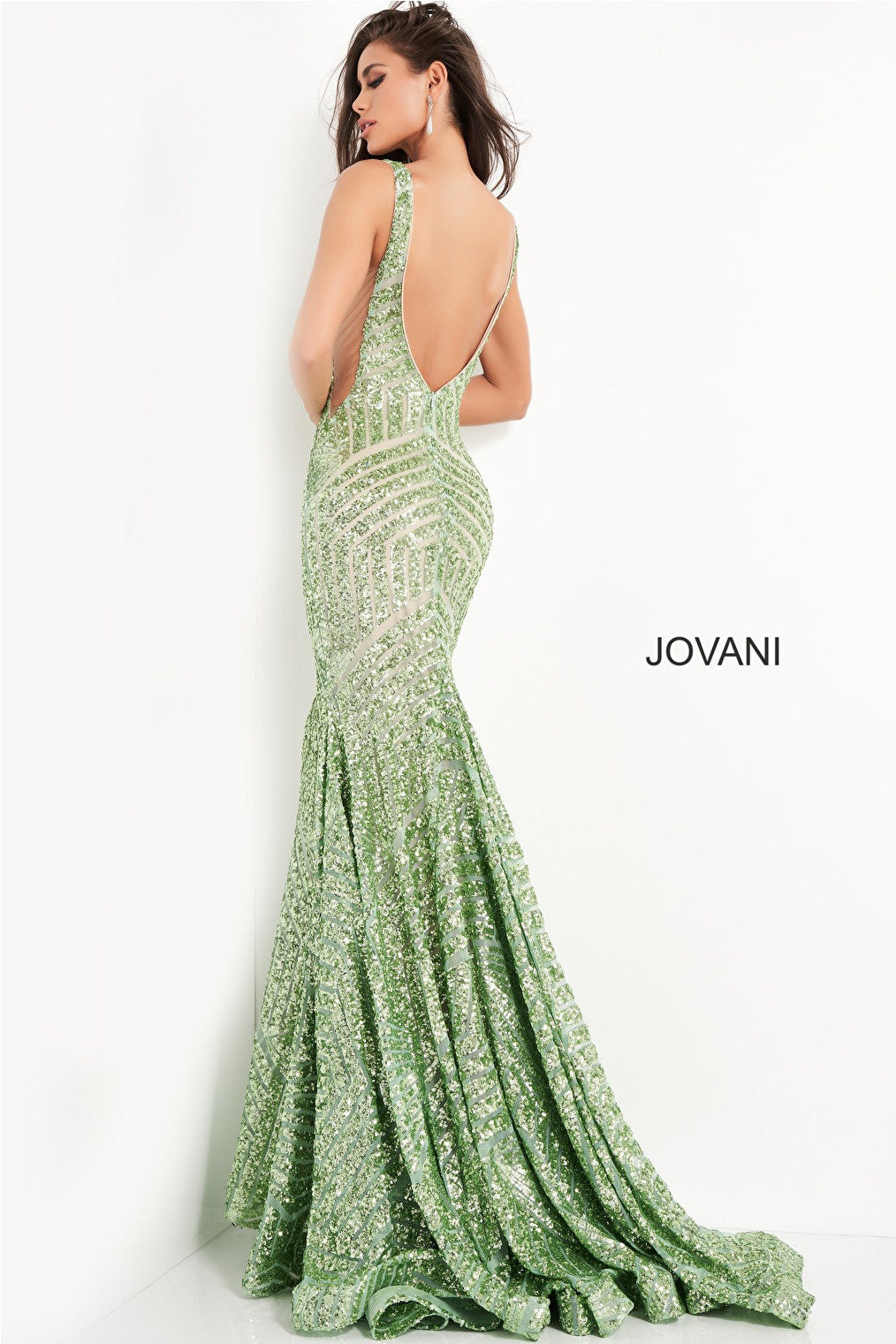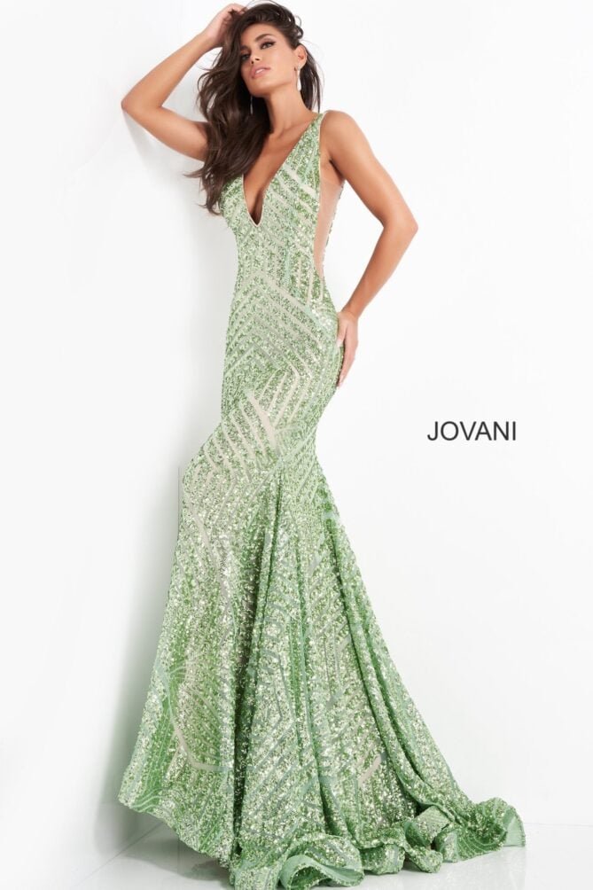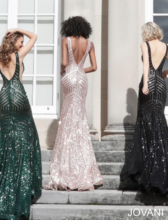 Jovani Deep V Geometric Sequin Mermaid Gown 59762