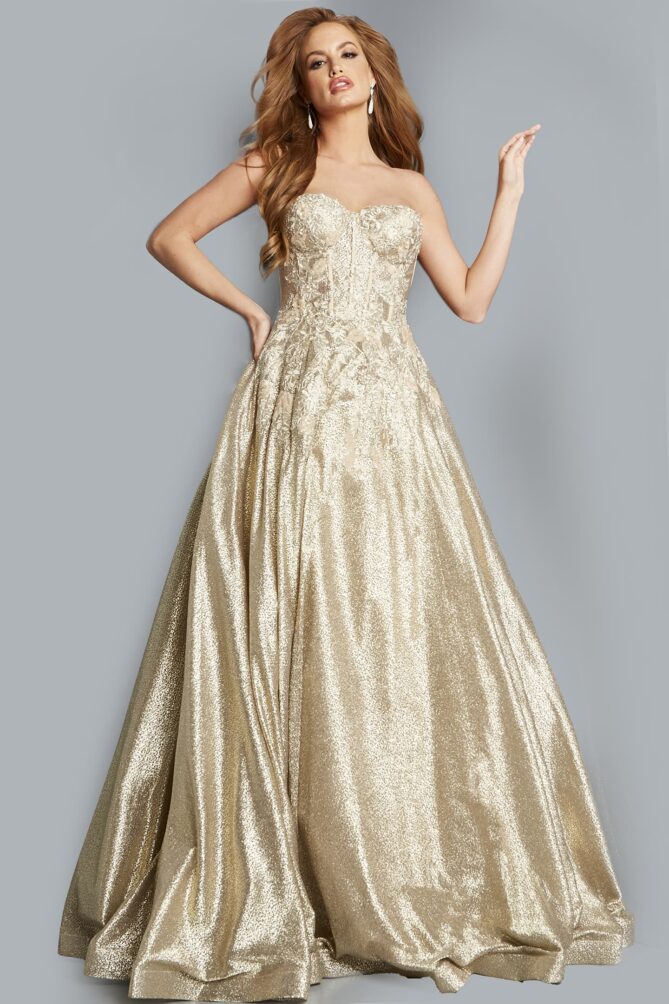 Jovani 07497. Available in Gold in sizes 00-24 please contact info@shoplisadean.com for special order inquiries of sizes/colors not currently in stock at Lisa Dean.