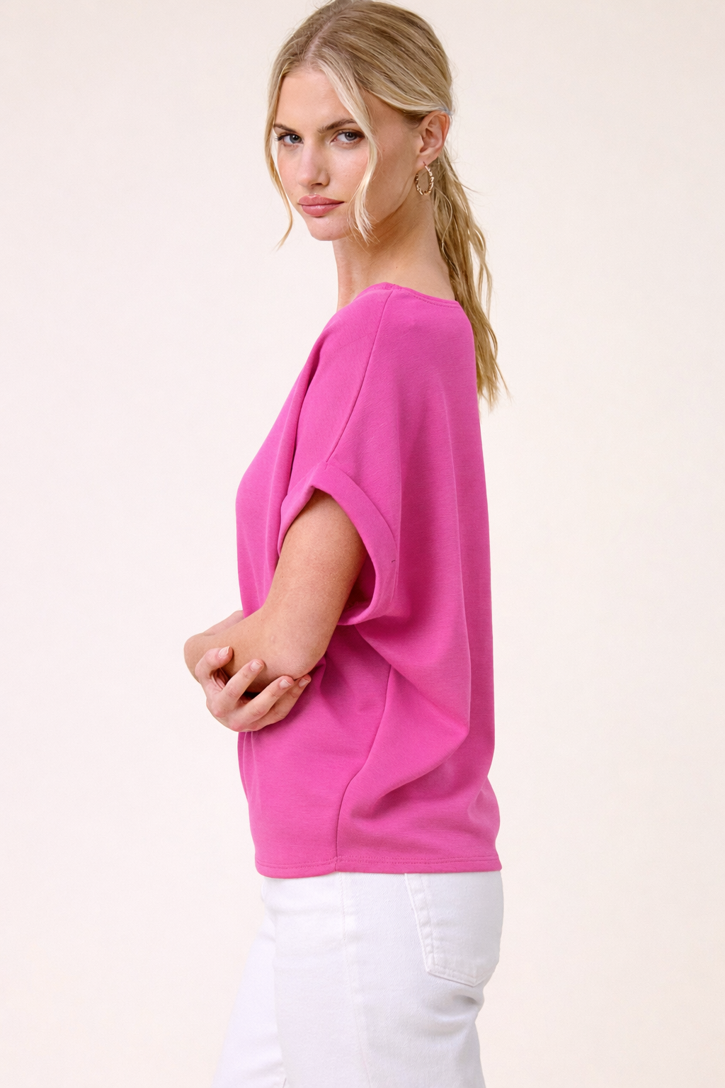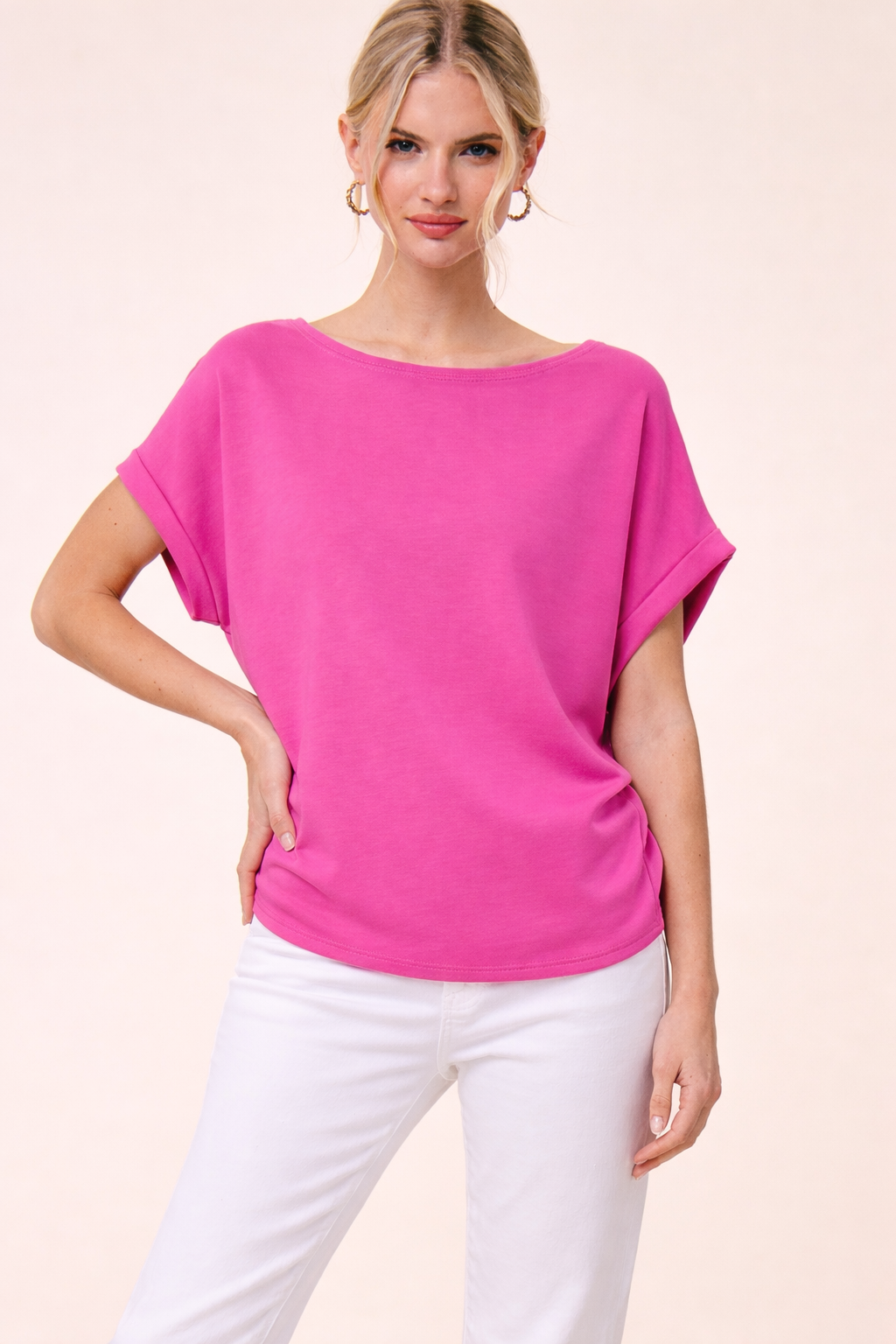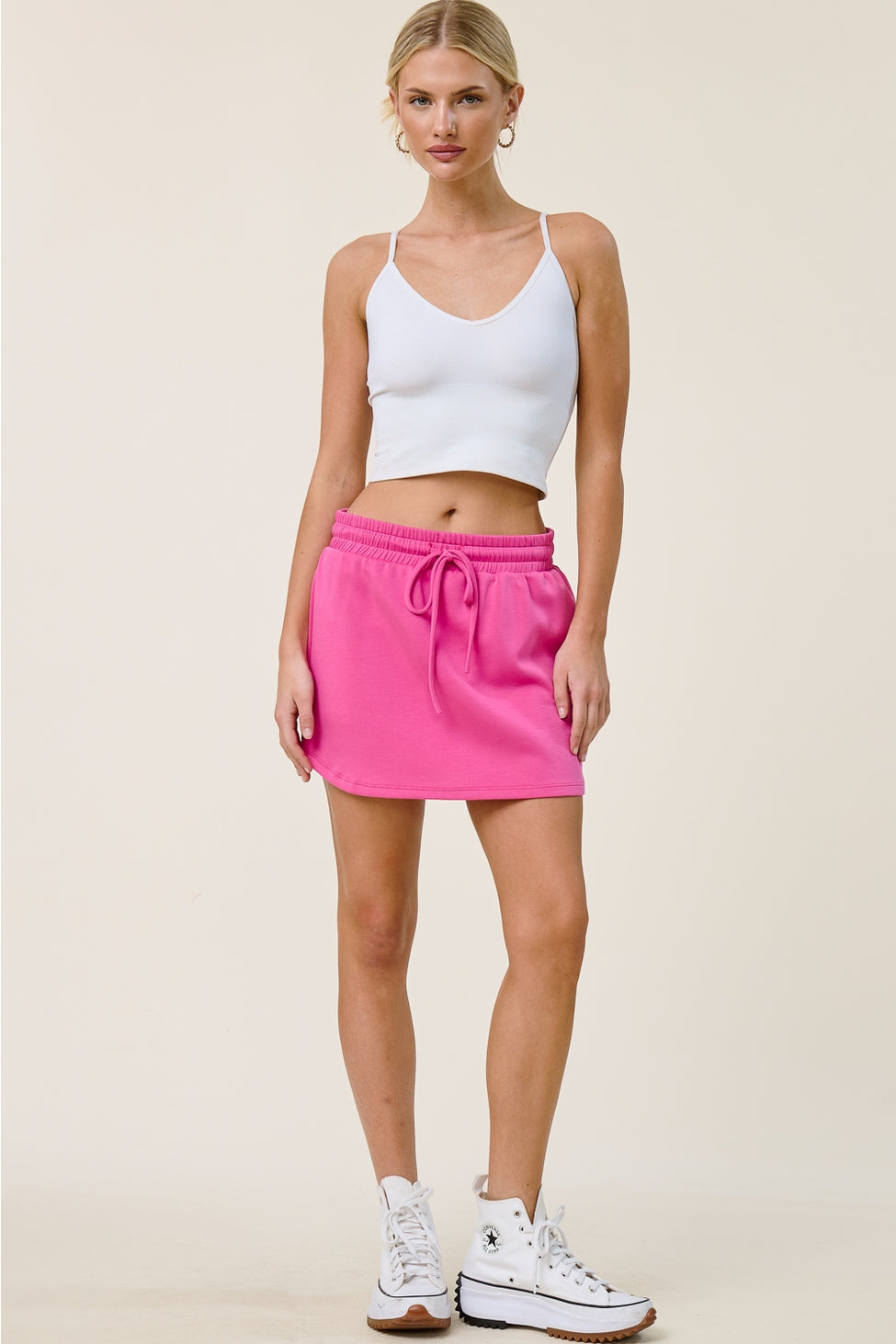 For the fashionista on the go! The Lauren set is made of a soft dreamy scuba fabric in vibrant fuchsia, complete with a drawstring skirt with attached shorts and short sleeve cuffed dolman top. Wear it as a complete set or each piece alone for infinite looks!