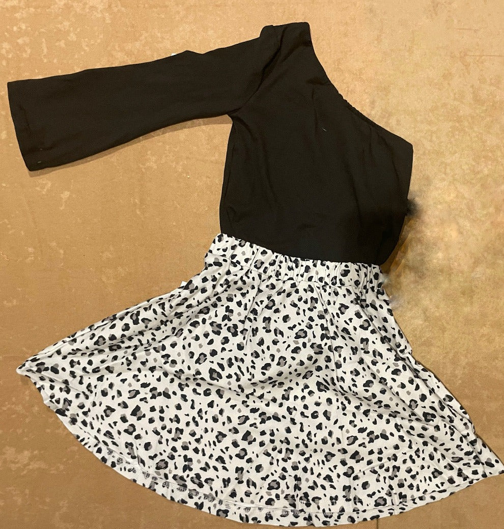 Little's Black One Shoulder and Leopard Skirt Set