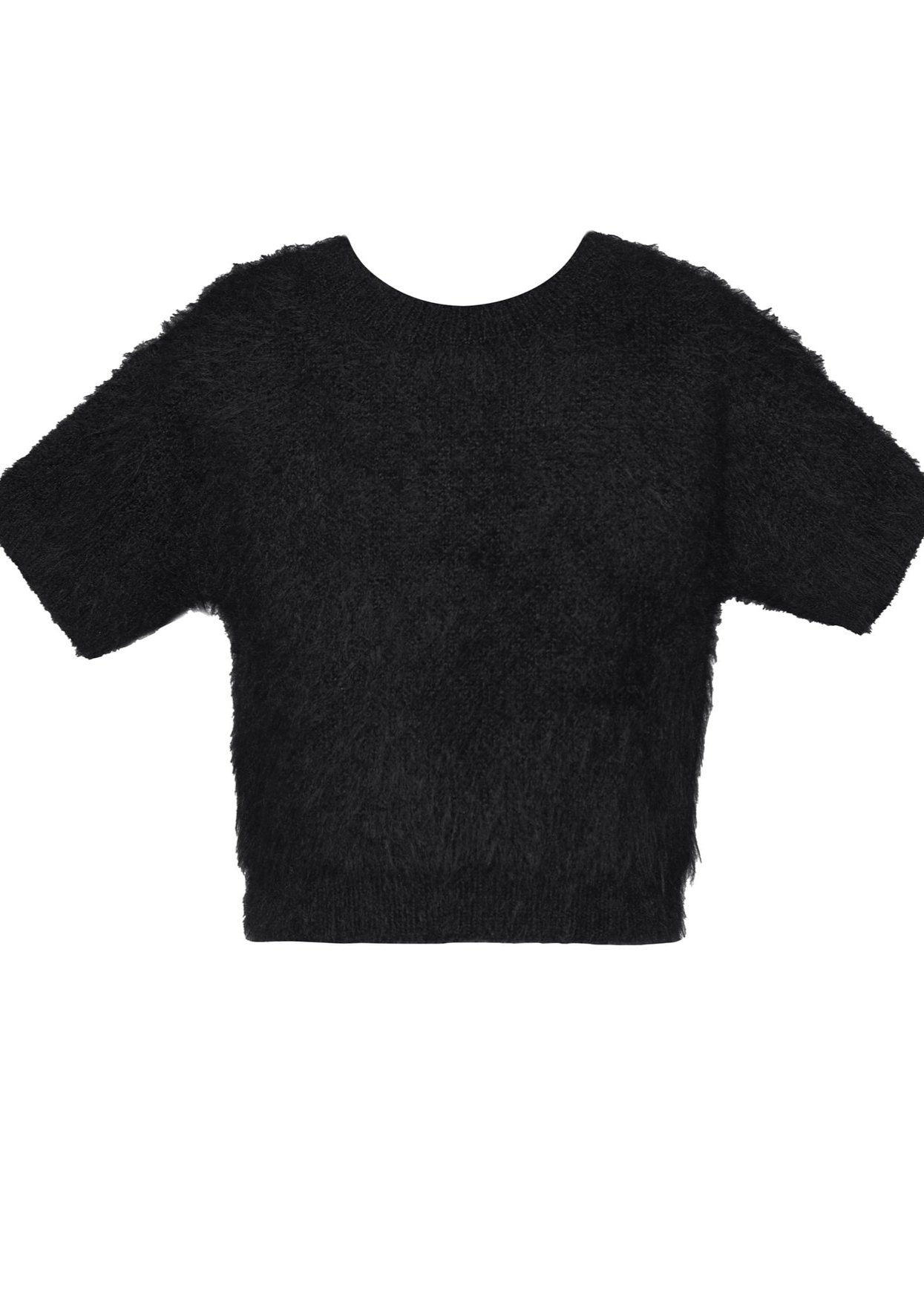 This short sleeve fuzzy sweater top is a perfect blend of style and comfort, making it a great addition to your little's wardrobe.