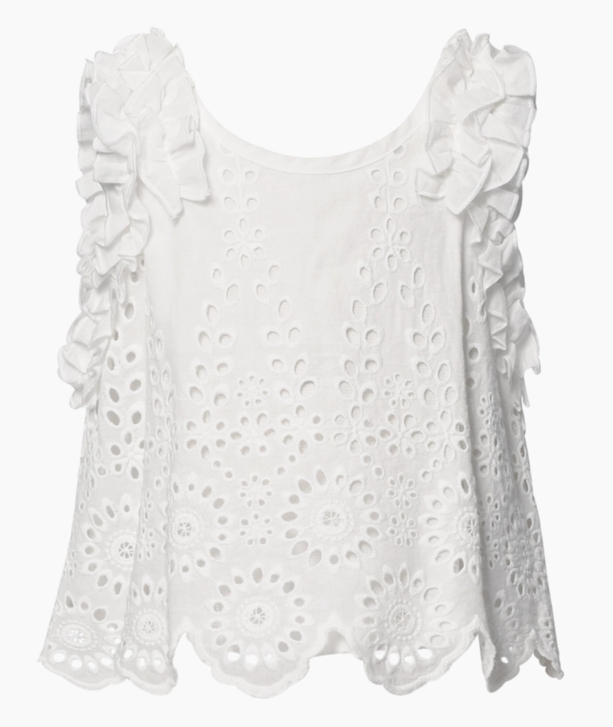 Little's White Eyelet Ruffle Top