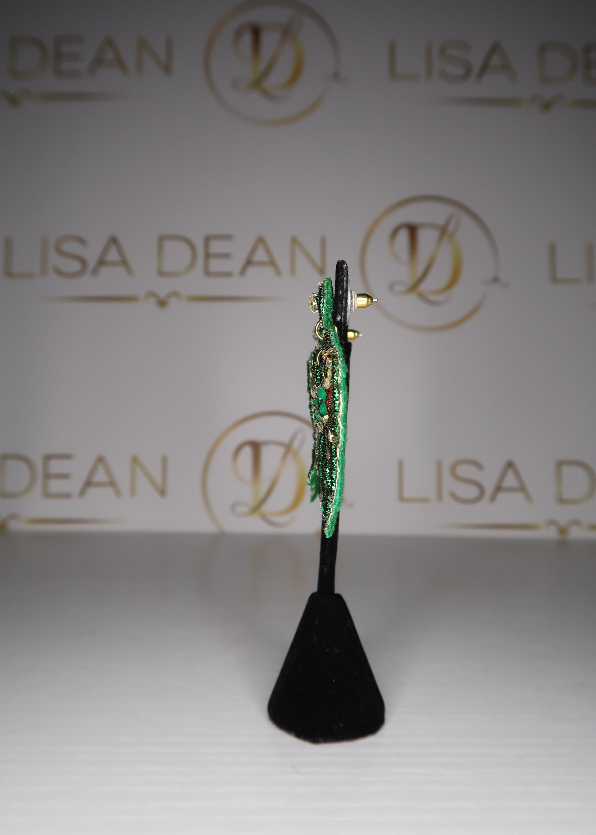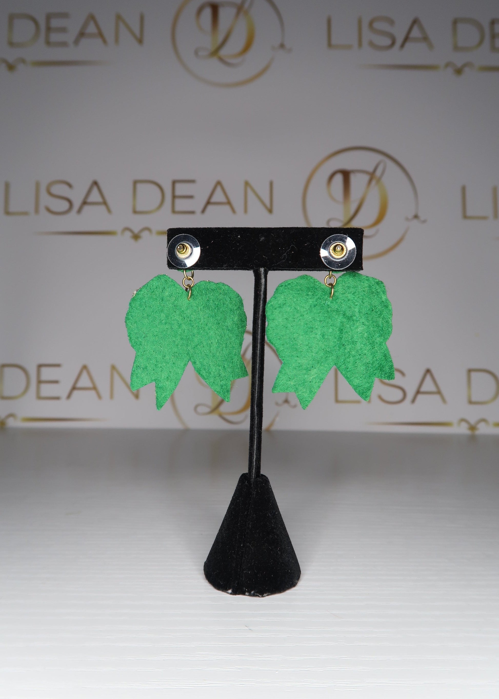 Carry the mistletoe with you all day long with these lightweight earrings! Approx. 2 1/4" long and 1 3/4" wide on a felt back post earring.