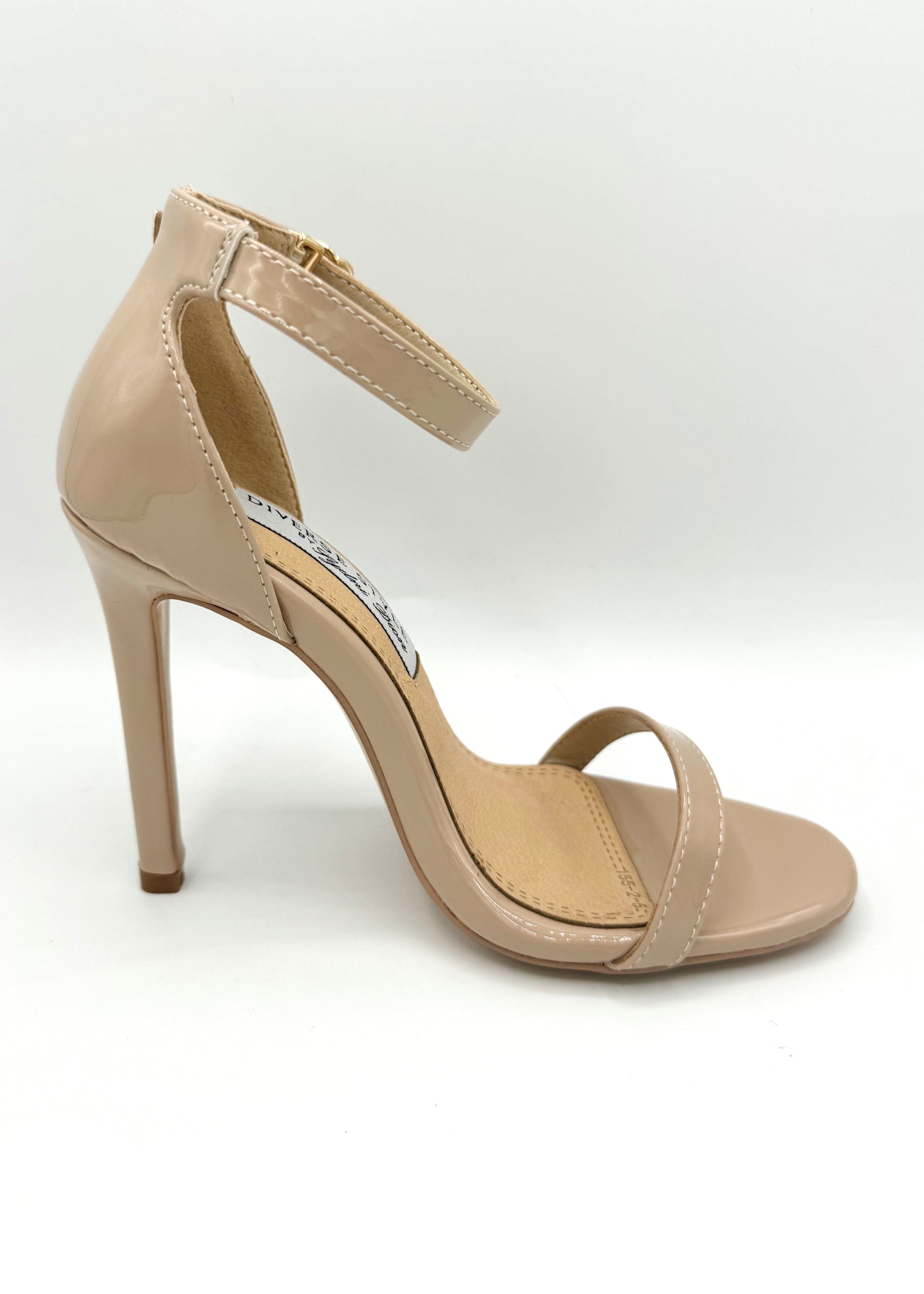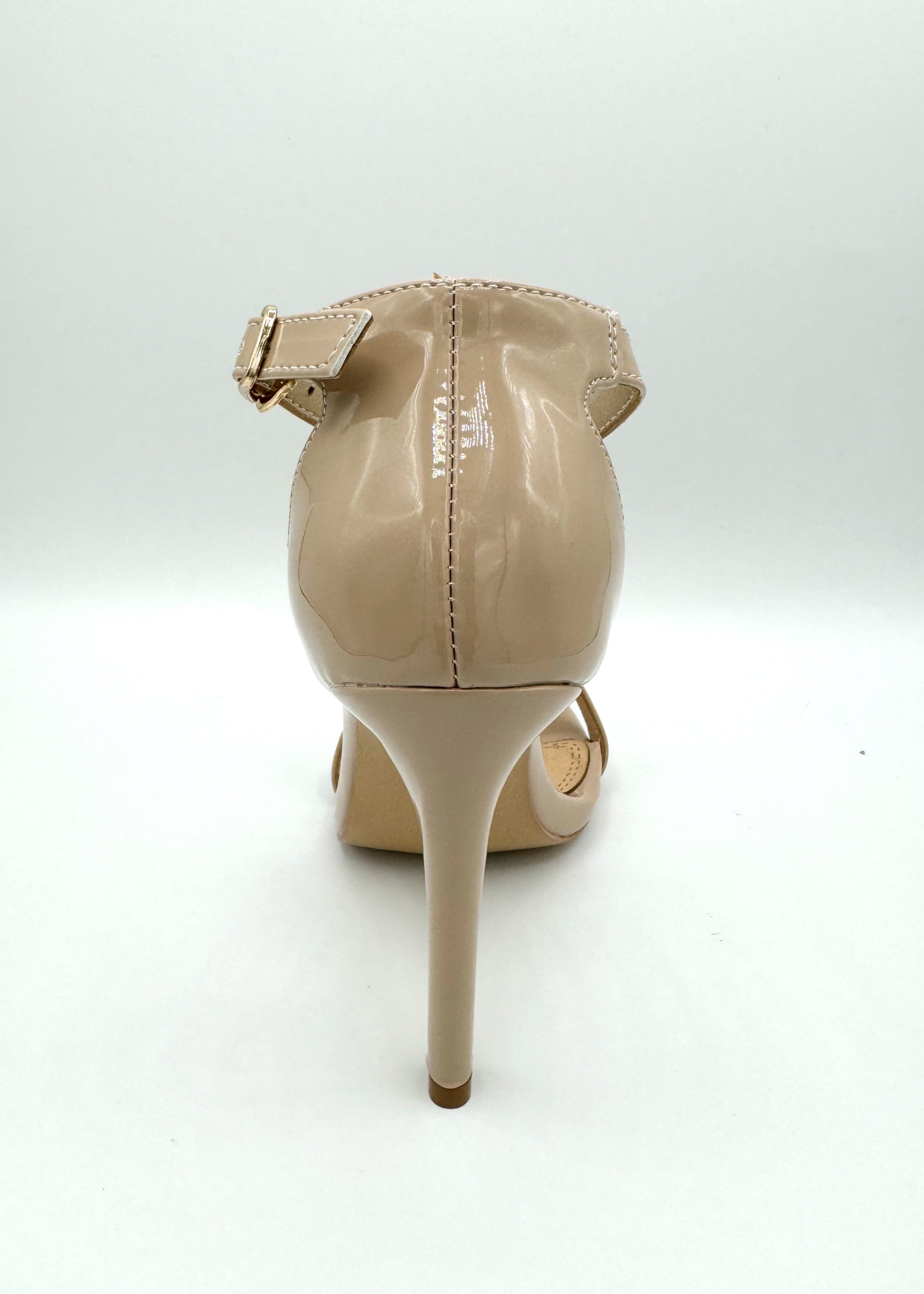 Light nude genuine patent leather, matches light skin tones, 4 inch heel - True to size Looks great with elegant long or cocktail style dresses and also professional enough to go with business or interview styles.