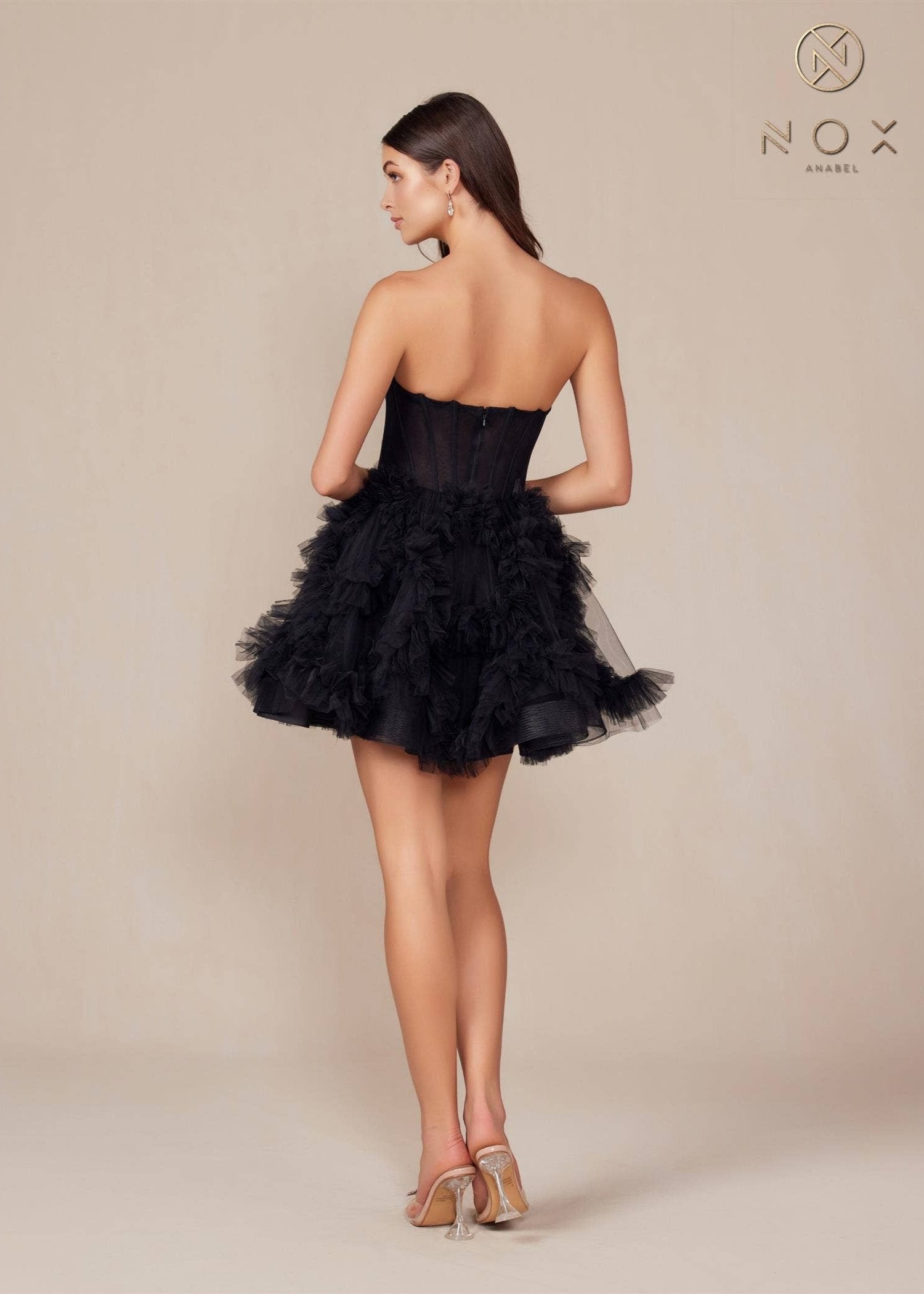 An instant classic, this black strapless mini will have you on the best dressed list! The sweetheart corset style top and a-line skirt with tulle detailing is all things sassy and classy, you really can't go wrong with this one. Finished with an invisible zipper.