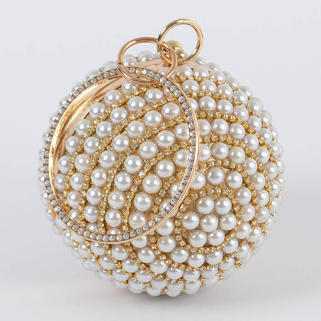 This exquisite clutch features a beautiful pearl design, rhinestones, and gold tones. She may be small, but she sure makes a statement! Can be worn as a bracelet or as a shoulder bag with the removable gold chain.