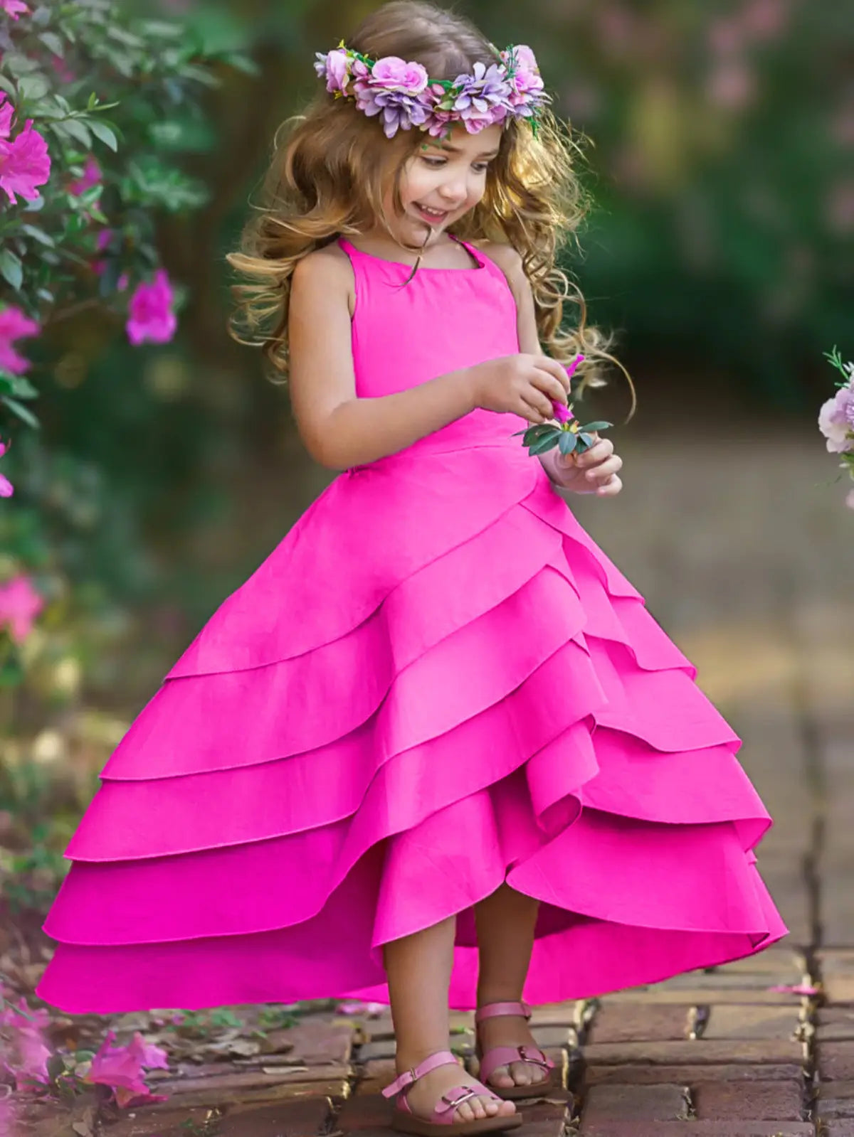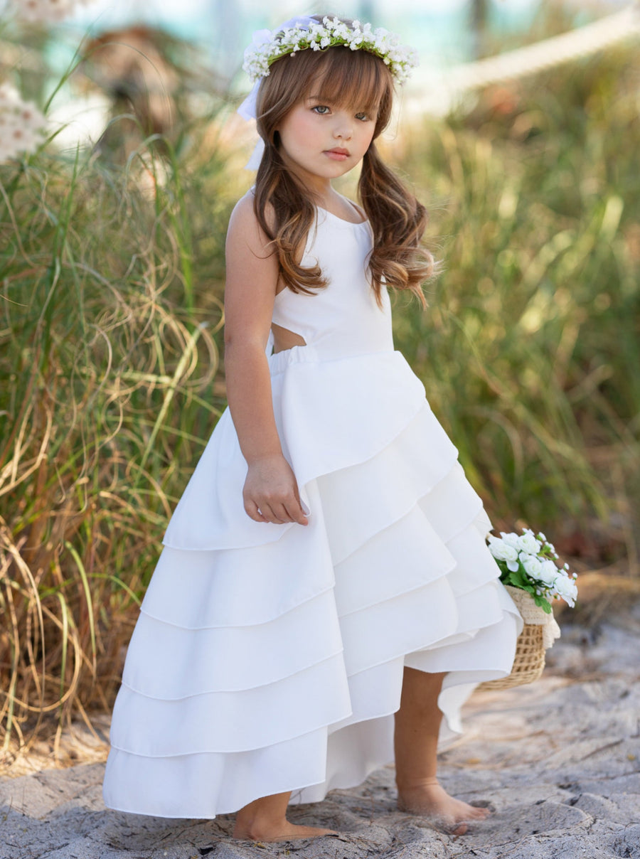 This pretty petal dress comes in bright pink or white. Perfect for any springtime outing!