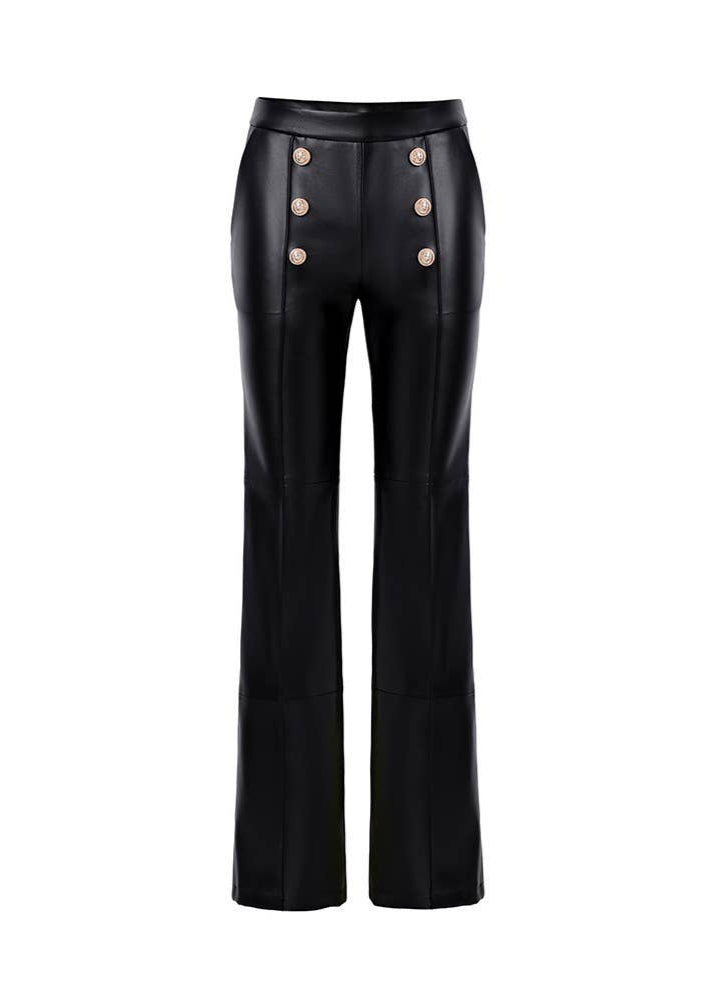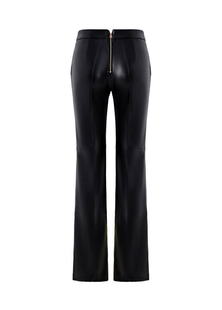 A Lisa Dean Exclusive || Vegan leather high-waisted wide-leg pants with zippers and slight flare at the hem, making them perfect to pair with boots, flats, or heels!