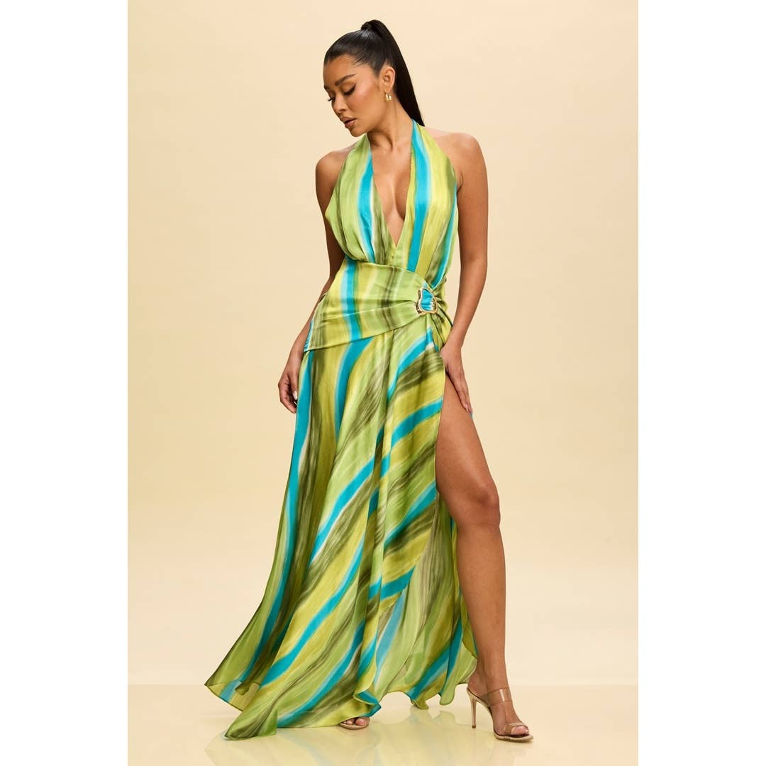 Rio Halter Slit Maxi Dress