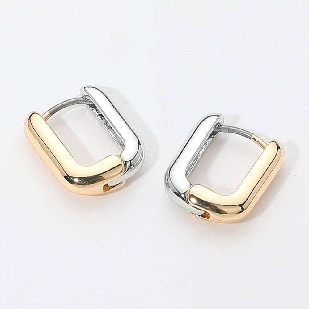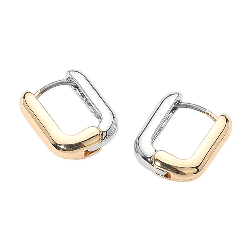 14K Gold Dipped Two Tone Mini Square Huggie Hoop Earrings
