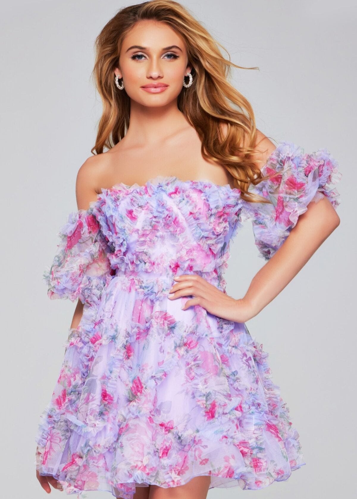 Jovani Strapless Fit & Flare Floral Mini 40330