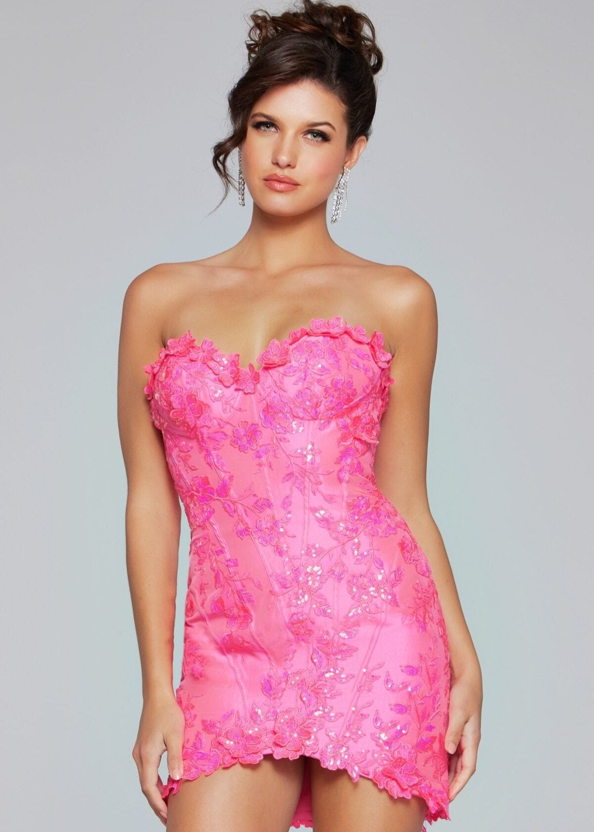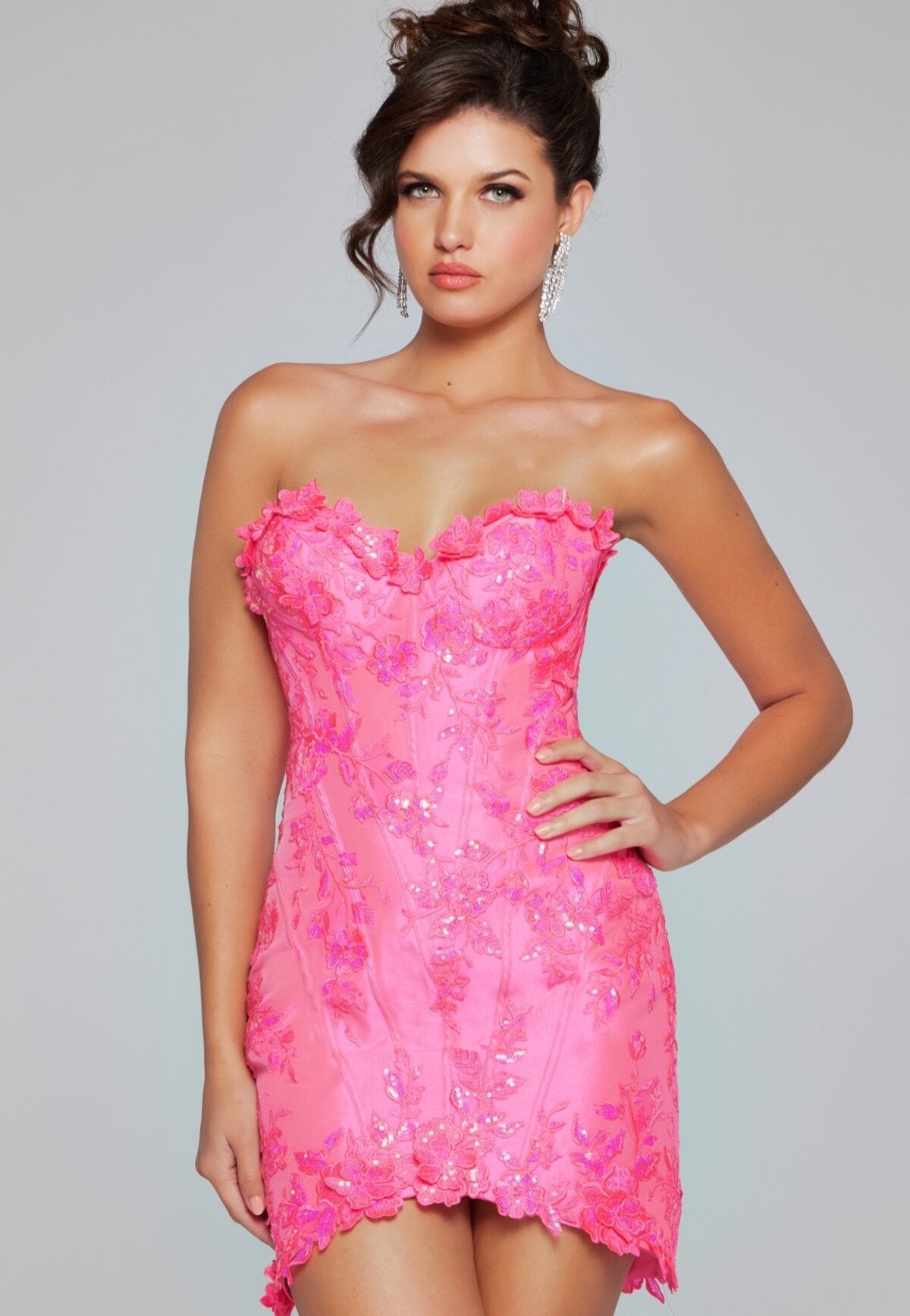 Jovani Neon Pink Sweetheart Fitted Mini 40380