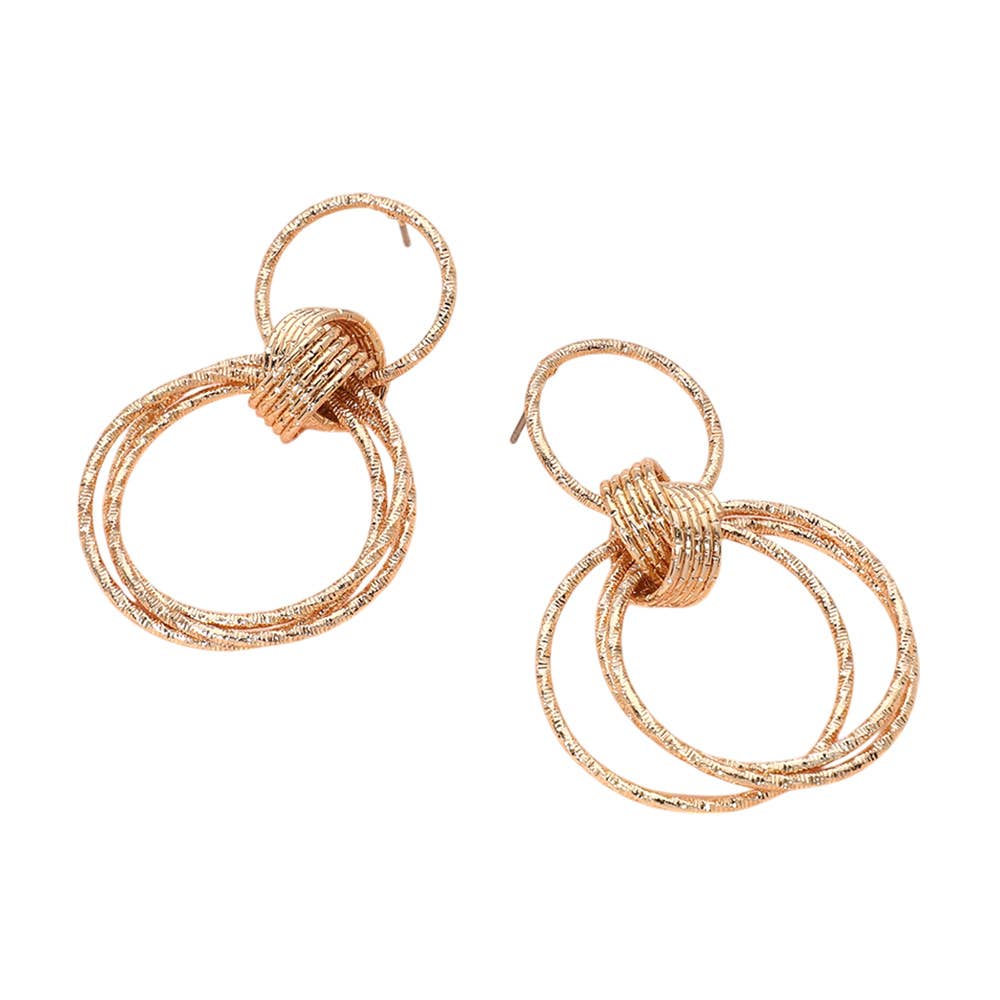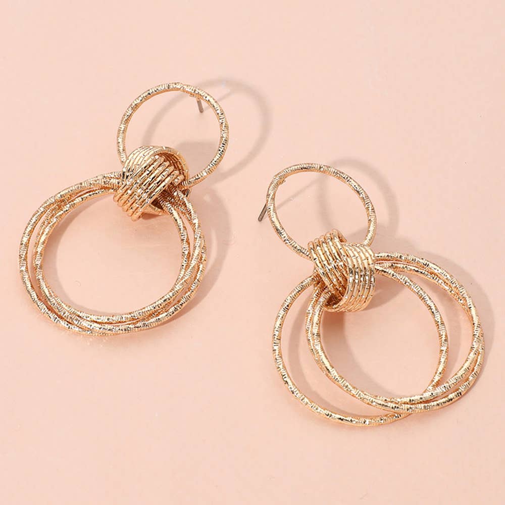Textured Metal Wire Ring Layered Doorknocker Earrings
